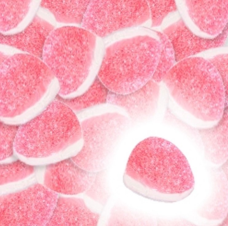 Sirop de glucose, eau, sucre, amidon, gélatine de boeuf, acidifiants : acide citrique, acide malique, arômes, régulateur d’acidité : citrate de sodium, colorant