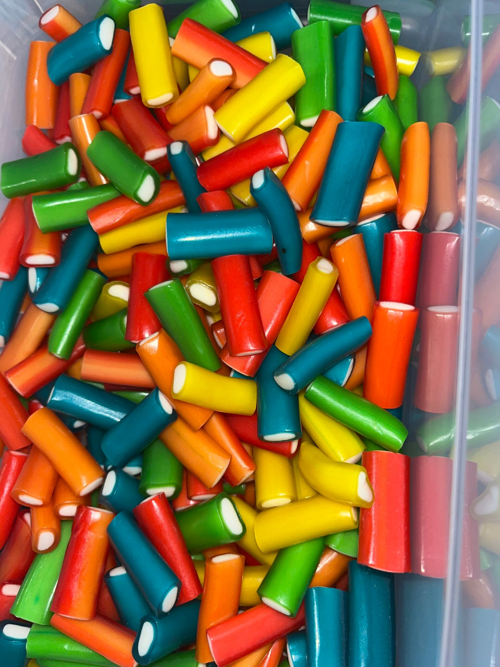 Sirop de glucose-fructose, farine de blé, amidon de maïs, eau, acidifiant E330, humectant E422, graisse végétale (palme), amidon de pomme de terre, gélatine de boeuf, arômes, correcteur d’acidité E331(iii), émulsifiant E471, colorants : E100, E129, E133. Allergène : Contient du Gluten