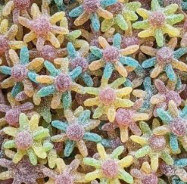 Sirop de glucose, eau, sucre, amidon, gélatine de boeuf, acidifiants : acide citrique, acide malique, arômes, régulateur d’acidité : citrate de sodium, colorants
